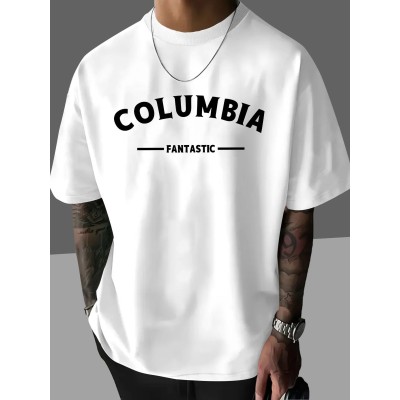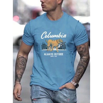 [1pc Columbia Men'S Comfortable T-Shirt] 1pc Columbia Men'S Casual T-Shirt - Soft Comfortable Summer Top with Print Graphic
