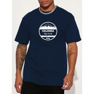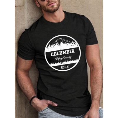 Men'S Classic "Columbia" Graphic T-Shirt - Soft & Comfortable, Casual Summer Wear with Mountain Print Design, Perfect Gift for Boyfriend