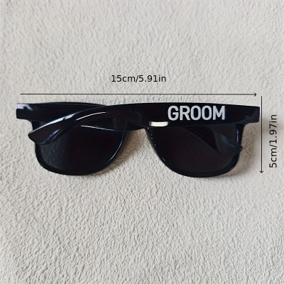 1pc Groom & Best Man Fashion Glasses - Wedding Celebration Photographic Props, Stylish Black Frame with "GROOMMANNER" Print, Perfect for Wedding Party Decorations