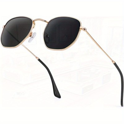 KALIYADI Hexagon Polarized Square Fashion Glasses for Women & Men - UV Protection Metal Frame, Stylish Black & Golden Design