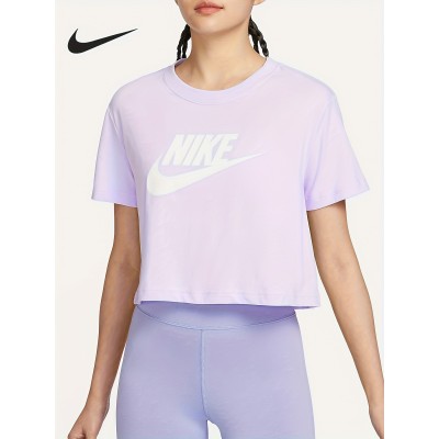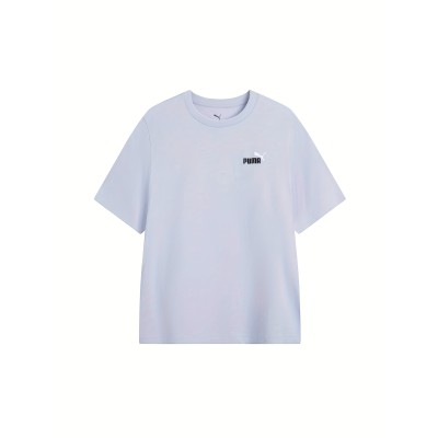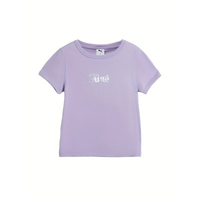 PUMA Women's Sporty Casual Short Sleeve T-Shirt - Light Purple with White Paris Script Lettering, Round Neck, Breathable Summer Fabric