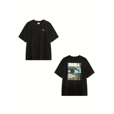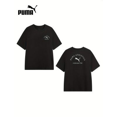 PUMA Unisex Sporty Casual Short Sleeve T-Shirt - Black with White Logo, Breathable Summer Tee, Machine Washable Round Neck Top for Men & Women