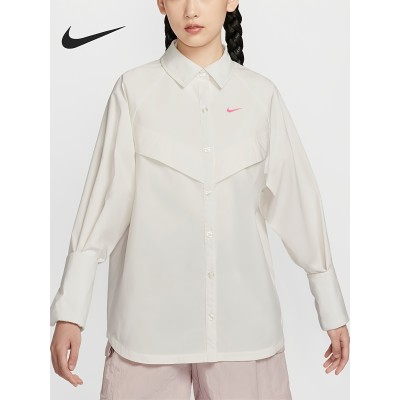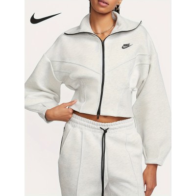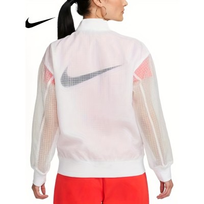 Women's Lightweight Jacket - Semi-Sheer Zipper Front Closure, Stand Collar, Easy-Care Hand Washable Outerwear for Everyday & Formal Events - Nike DV7973-100, Spring Fashion