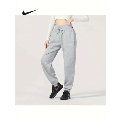 Women's Nike High-Waisted Fleece-Lined Joggers - Oversized Light Grey Elastic Waist Drawstring Sweatpants for Gym, Training & Casual Winter Wear